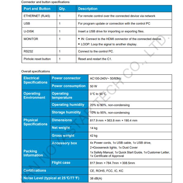 C1, bảng điều khiển được thiết kế đặc biệt cho các sản phẩm xử lý video đầu cuối của NovaStar, chẳng hạn như dòng J, chủ yếu được sử dụng để điều khiển sân khấu trực tiếp. C1 được thiết kế với hai màn hình LCD. Một được sử dụng để xem trước các nguồn đầu vào. Cái còn lại, cùng với các nút trên bảng điều khiển, được sử dụng để định cấu hình các lớp.