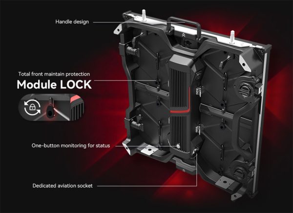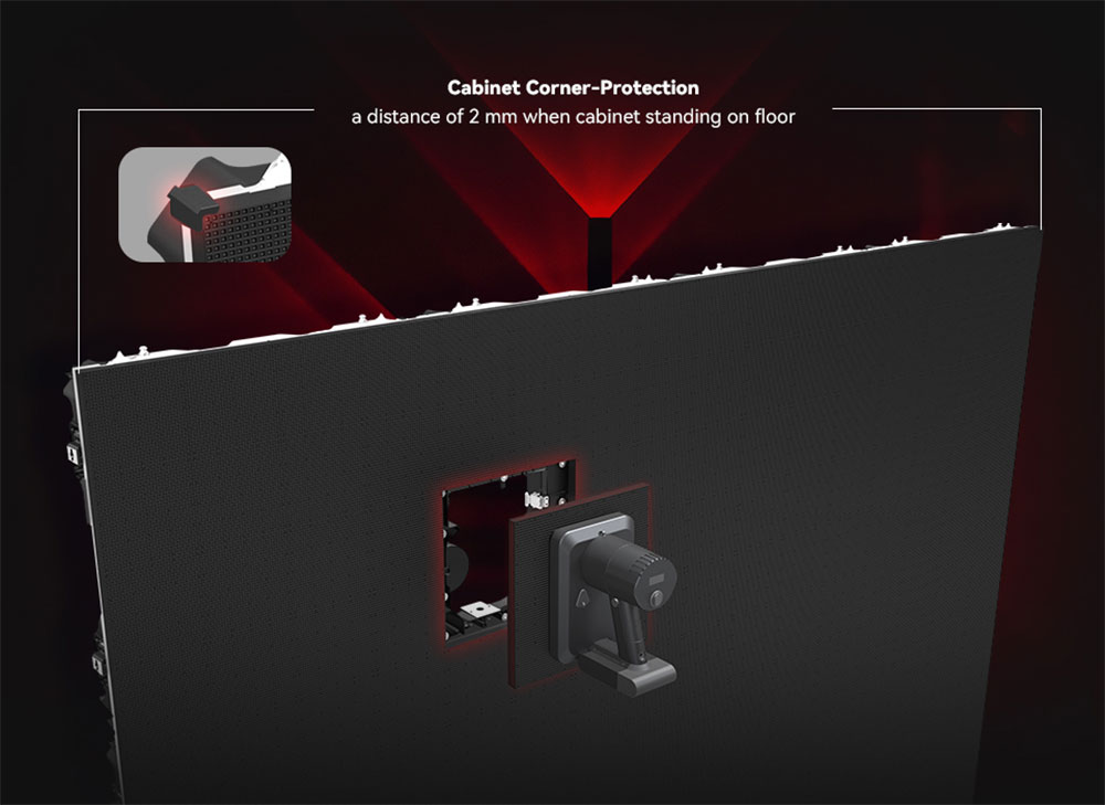 - Đa bảo vệ và dễ bảo trì Thiết kế bảo vệ mép: bảo vệ góc và mép màn hình LED, ngăn chặn va đập hoặc hư hỏng trong quá trình lắp đặt hoặc vận chuyển. 100% Bảo trì phía sau: Bảo trì phía trước của mô-đun, mỗi mô-đun có thiết kế từ tính giúp màn hình trở nên liền mạch.