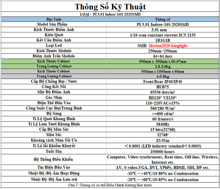 VHD – Đơn vị hàng đầu Việt Nam phân phối Module Led Trong Nhà PI 3.91 – chính hãng Kirin