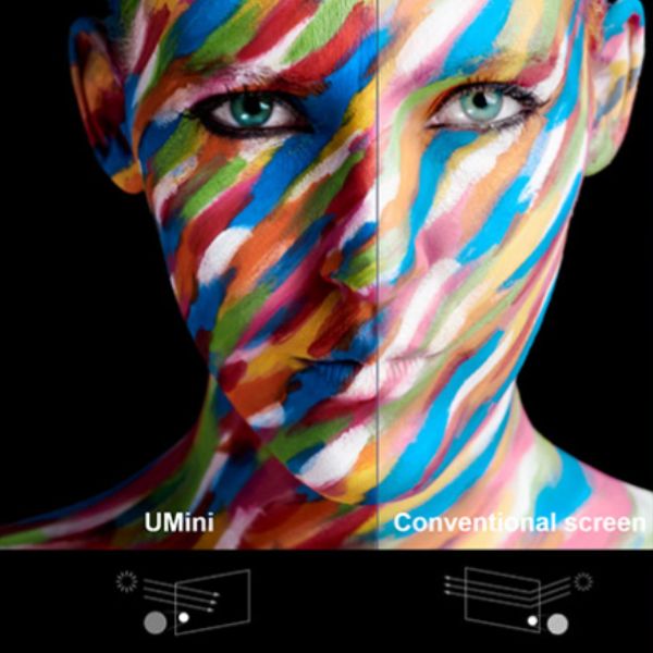 Công nghệ EBL (Mức độ đen nâng cao) được áp dụng để hấp thụ hoàn toàn ánh sáng đi lạc từ bên ngoài và ánh sáng không ảnh hưởng đến sự phát quang bình thường của màn hình, để đạt được hiệu ứng tương phản 20000: 1, cải thiện độ tương phản của ánh sáng và bóng râm, tăng cường chi tiết hình ảnh, khôi phục màu sắc tự nhiên, nâng cao cảm giác khoa học và công nghệ và tác động thị giác.