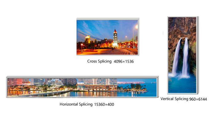 Độ phân giải của đầu ra nối có thể đạt tới 15360×660@60Hz (nối ngang) hoặc 1200×7680@60Hz (nối dọc) hoặc 4096×2400@60Hz (nối hình chữ thập) và kích thước đầu ra có thể được điều chỉnh tùy ý trong phạm vi những phạm vi này Hỗ trợ nối điểm-điểm, nhiều máy có thể được xếp tầng để hoàn thành đầu ra nối có độ phân giải lớn hơn |