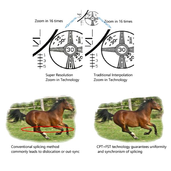 - Công nghệ Phóng to Siêu phân giải có thể loại bỏ hiệu quả hiện tượng răng cưa do phóng to hình ảnh gây ra, do đó giảm hiện tượng nhòe do mất nét tương ứng.