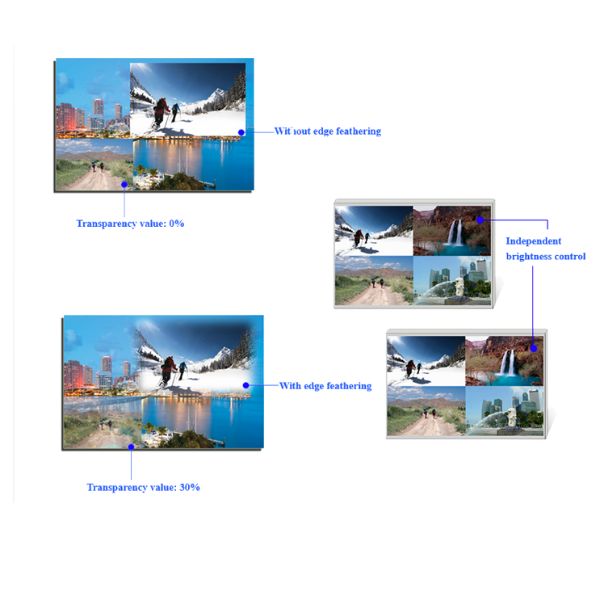 Kết hợp nhiều màn hình và Nối hình đặc biệt - U6 không chỉ có thể hiển thị 6 cửa sổ trên một màn hình mà còn có thể điều khiển đồng thời 6 màn hình LED, mỗi màn hình có thể hiển thị độc lập hoặc kết hợp thành một hình ảnh hoàn chỉnh. Bên cạnh đó, độ cao pixel của các màn hình như vậy có thể khác nhau.